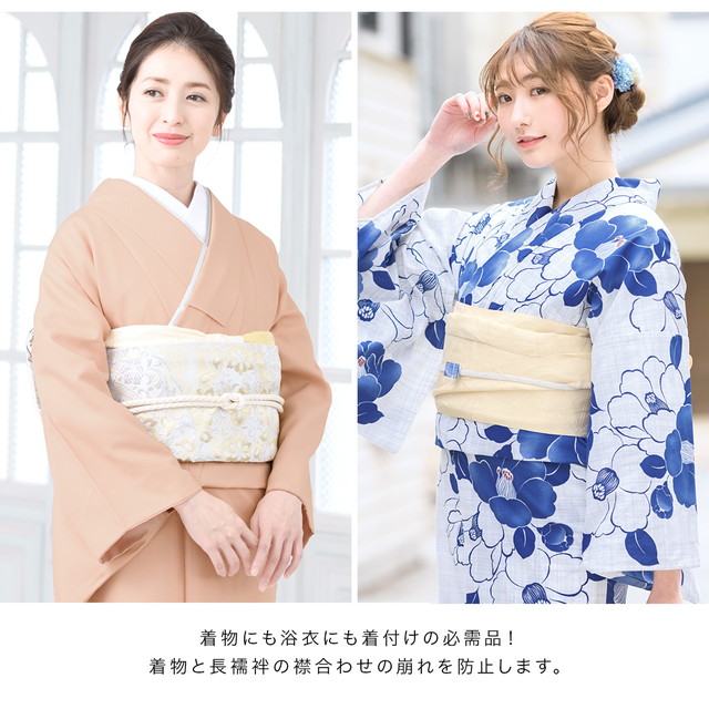 着物と長襦袢の襟合わせが崩れないように止めておくのが伊達締めの役目です。