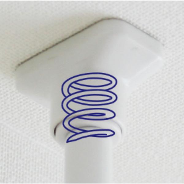 ポールの先端部分には強力なバネが入っているので、壁面に対する反発力が強くなり、しっかりと固定できます。