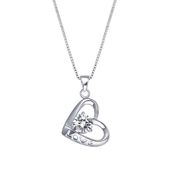 ネックレス レディース キュービックジルコニア ハート 文字抜き S925 シルバー 入学式 卒業式 卒園式 オケージョン 送料無料!