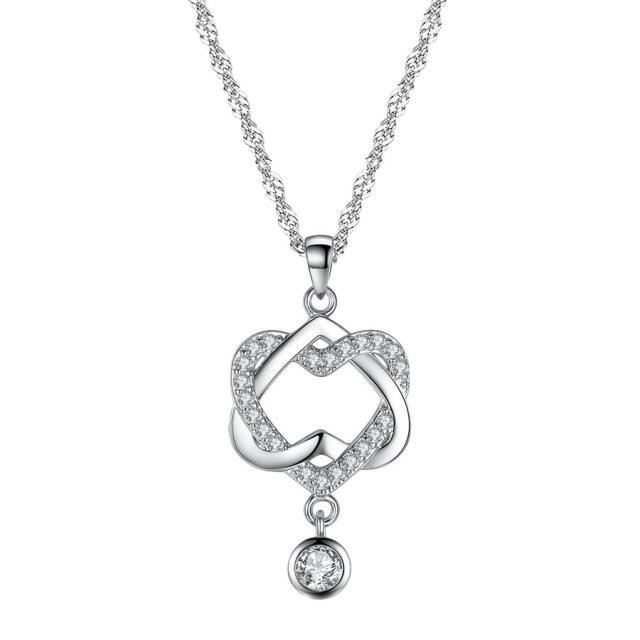 重なりあったハート&動くたびに光り輝くキュービックジルコニアがとても魅力的。