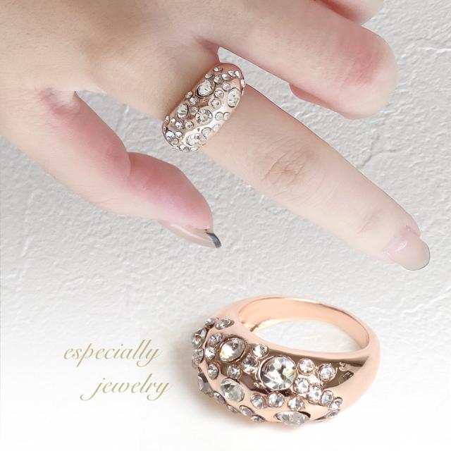 指輪 リング ストーン クリア ピンクゴールド ぷっくり ワイドリング ボリューム 入学式 卒業式 卒園式 オケージョン 送料無料!