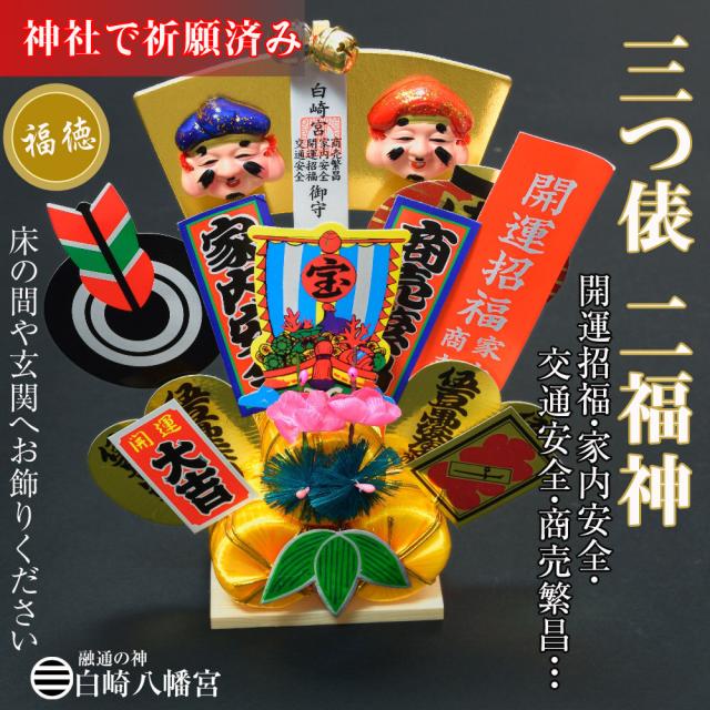 三つ俵 二福神・俵飾り 縁起物/開運招福/金運隆昌/商売繁昌/家内安全/交通安全/OP-0287 神社祈願済み