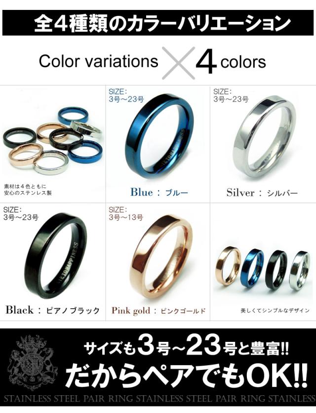幸せの鍵 刻印 新素材ステンレスPVDリング 指輪 ペア ピンキー ブラック シルバー ブルー ピンク【 chsr16-cr 】