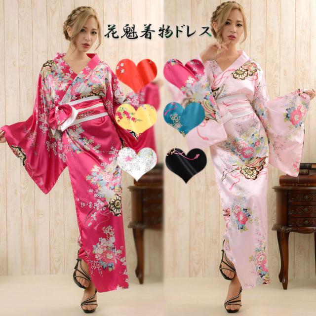 花魁 コスプレ 着物ドレス 花魁 コスプレ衣装 よさこい衣装 和服 ロング 送料無料 太鼓柄花魁着物ロングドレス