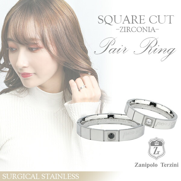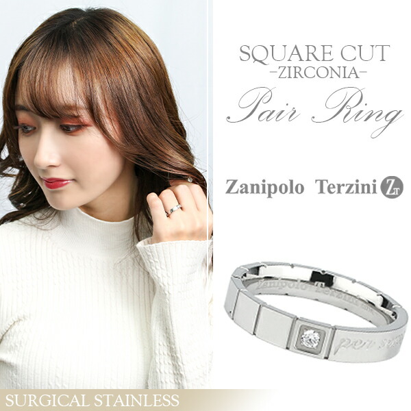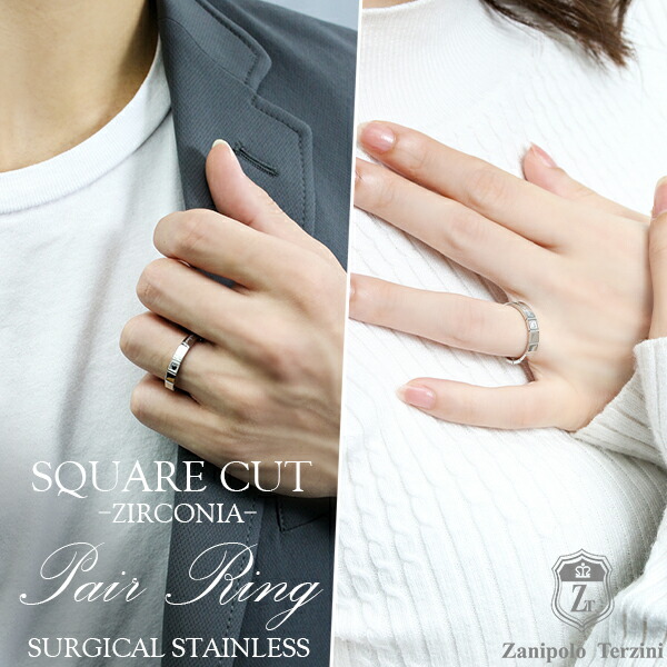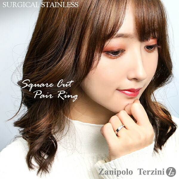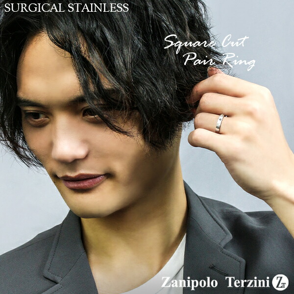 ザニポロタルツィーニ スクエアカット サージカルステンレス ペアリング 7〜21号 刻印 名入れ ステンレス アクセサリー リング お揃い ペアリング 2本セット ステンレス ブランド 指輪