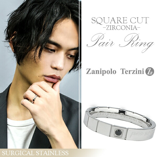 【Zanipolo Terzini/ザニポロタルツィーニ】スクエアカット サージカルステンレス ペアリング (7〜21号)