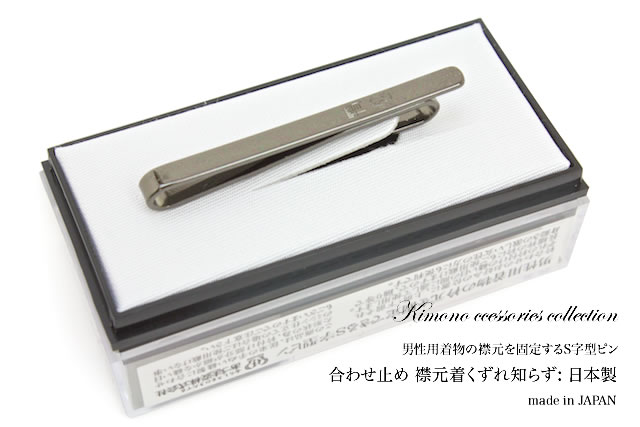 S字になっているピンを左右の衿に挟んで、見えないところで止めて使用します。