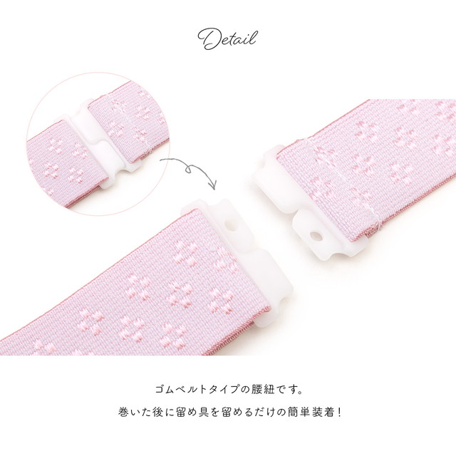 ゴム腰紐は巻いた後に留め具を留めるだけで簡単に長襦袢や着物を着付けることができます。