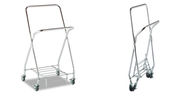 自立して折り畳めるため、収納時に場所を取らない小型カートです。