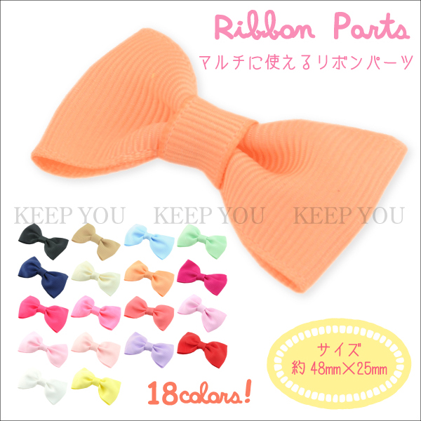 【メール便対応】リボン パーツ ≪約48mm×25mm≫ 同色5個セット ハンドメイド用 デコパーツ 【手芸 ハンドメイド 素材 デコ モチーフ グログラン リボン パーツ オリジナル 小物 バック スカート パニエ おむつケーキ ラッピング パーツ 】p-ribbon-05┃
