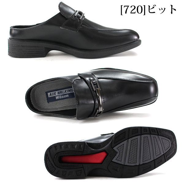 ビジネス シューズ メンズ 靴 サンダル 黒 オフィス 会社 デスクワーク ワイズ 3E 幅広 サンダル 革靴 紳士靴 軽量 軽い 足ムレ防止 かかとなし ビットタイプ レースアップ ウィルソン Wilson AIR WALKING ミュール
