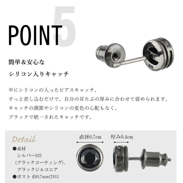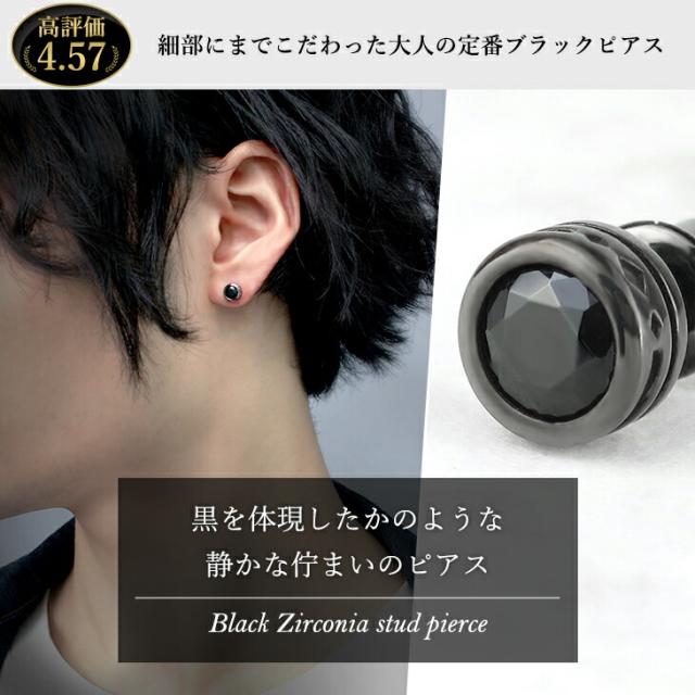 【Royal Stag ZEST】 ブラックカラー 一粒 ジルコニア シルバーピアス (1P/片耳用)