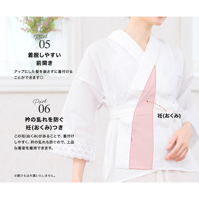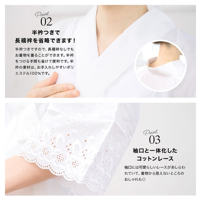 レースの袖が可愛らしく、汗を吸い取り汗ジミや汚れからお着物を守る役割をしてくれます。