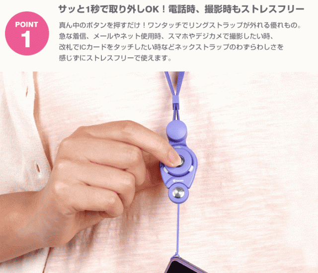 Hameeで1番売れているネックストラップ。 「便利!」「使いやすい!」「着脱簡単!」高レビュー多数のHand Linker Putto(ハンドリンカー プット)カラビナシリーズ。 ・真ん中のボタンを押すと、リングストラップがサッと外れる ・通話、撮影、動画視聴、改札タッチ時などネックストラップのわずらわしさから解放 ・リングストラップはカラビナ仕様でカバンやベルトループに装着OK ・スマホ、デジカメ、カギ、パスケースなどの付け替えカンタン ・リングに指を通せば落下防止に ・指が通しやすい余裕のあるリングサイズ ・ネック部分は平ヒモ採用で首が痛くなりにくい ・機器の着脱時にネックストラップを外す必要がなく、髪の乱れが気になる方や帽子をよくかぶる方にもオススメ ・フックに引っ掛けもOK ・カラフルPOPなカラーバリエーション |