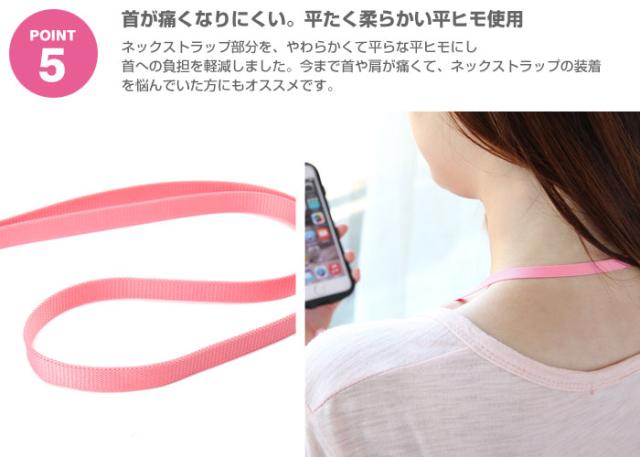 - カラナビタイプのネックストラップは使い勝手が良い。 スマホケースの色に合わせて購入している。