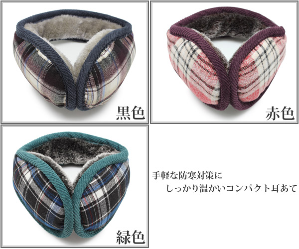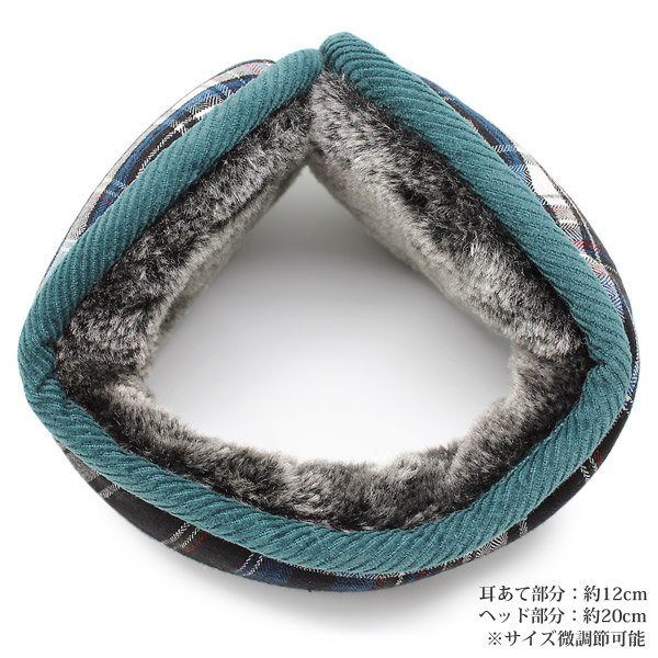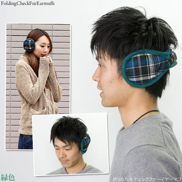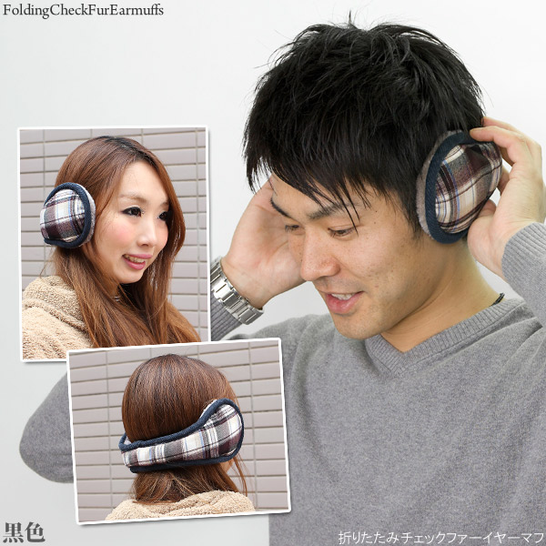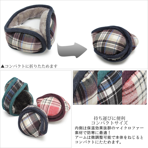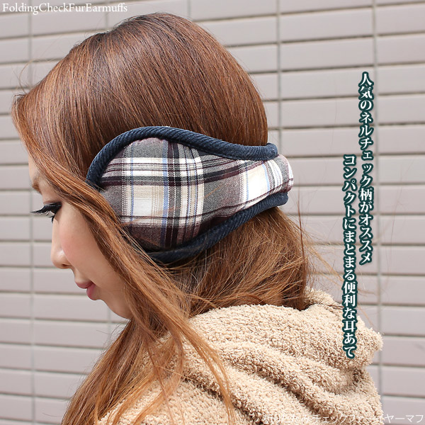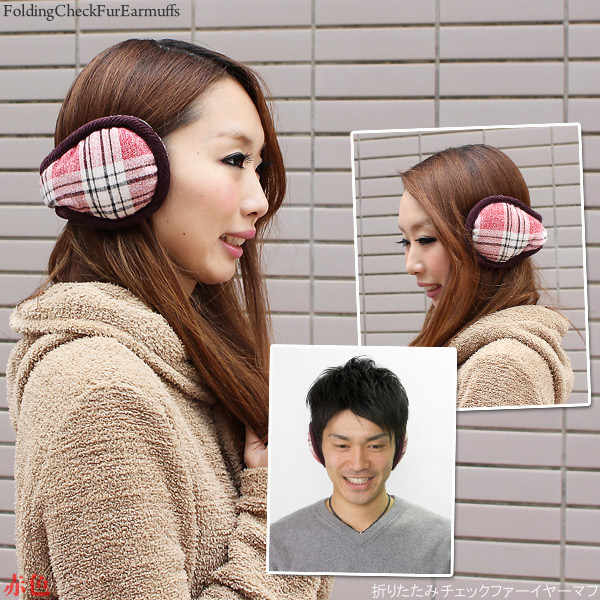 耳あて メンズ 折りたたみ イヤーマフ サイズ調節 チェック柄 防寒 メンズ 冬 レディース / 折りたたみチェックファーイヤーマフ