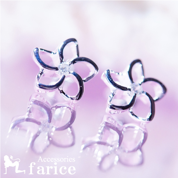 一輪プルメリア クリアストーン装飾 カットライン レディース ハワイアンジュエリー シルバー925 ピアス【花/10mm幅】