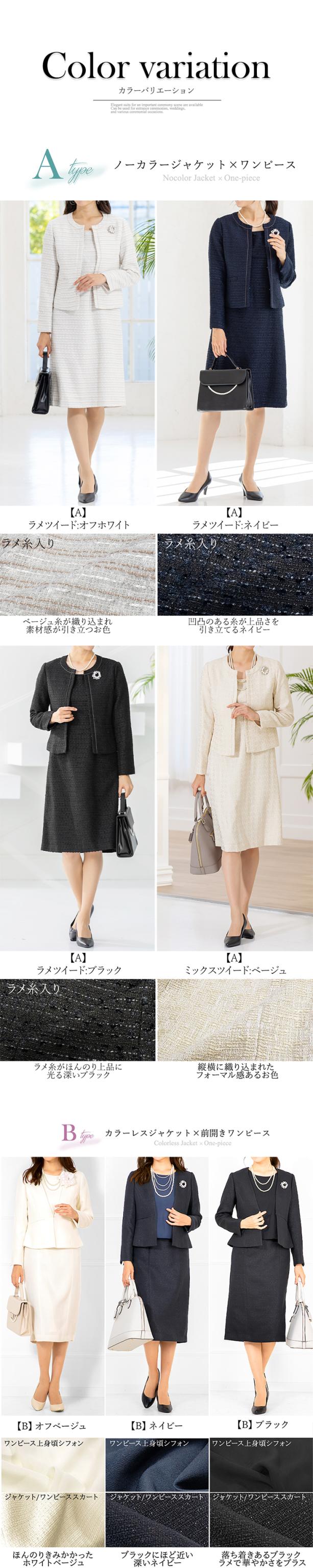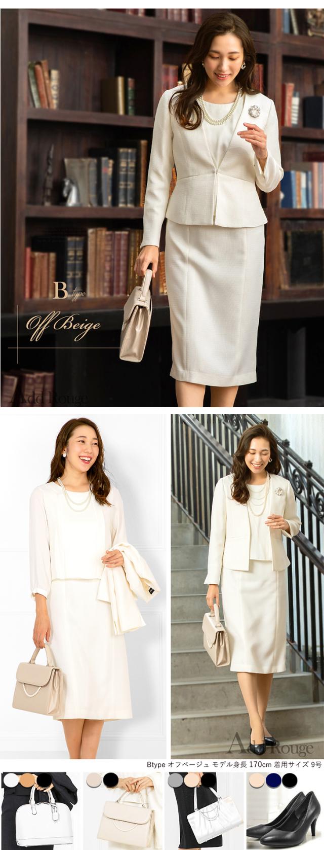 デザインが選べるジャケットとワンピースのセットアップスーツです。