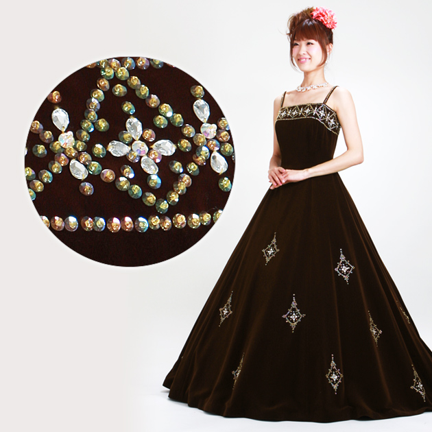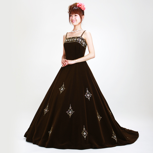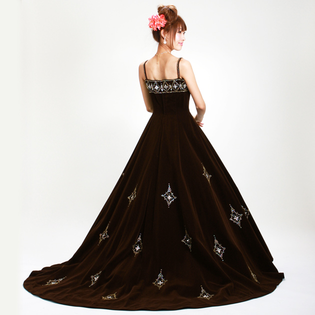 カラードレス レンタル 7号-9号 Aライン 茶 お色直し 披露宴 7310 FC135 送料無料