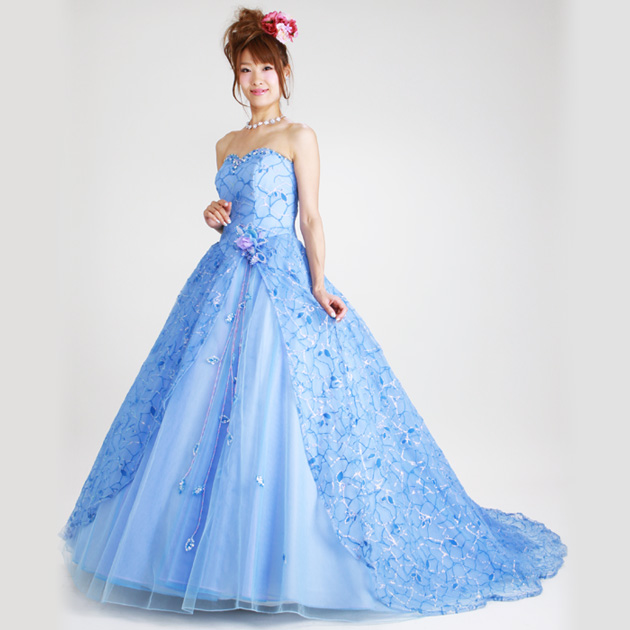 カラードレス レンタル 11号 プリンセスライン ブルー お色直し 披露宴 7338 OR657 送料無料