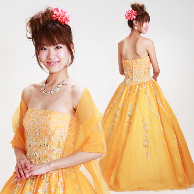 カラードレス レンタル 7号-11号 プリンセスライン オレンジ お色直し 披露宴 7346 SA60801 送料無料
