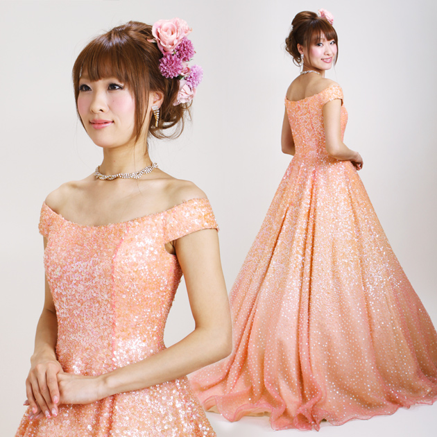 カラードレス レンタル 7号 Aライン ピンク お色直し 披露宴 7348 SA23600 送料無料