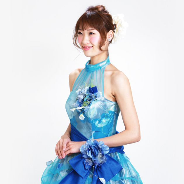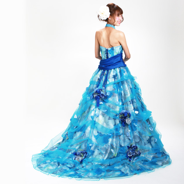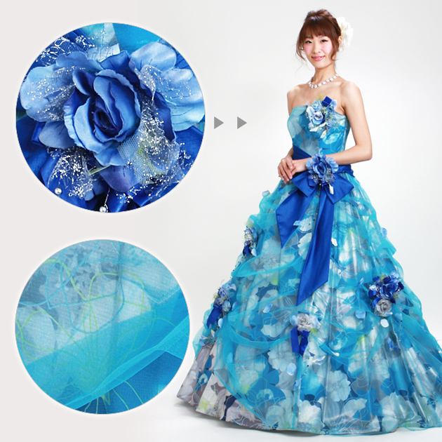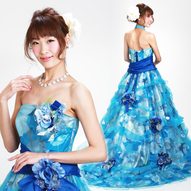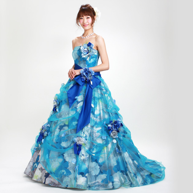 カラードレス レンタル 9号-11号 プリンセスライン ブルー お色直し 披露宴 7408 ZA012 送料無料