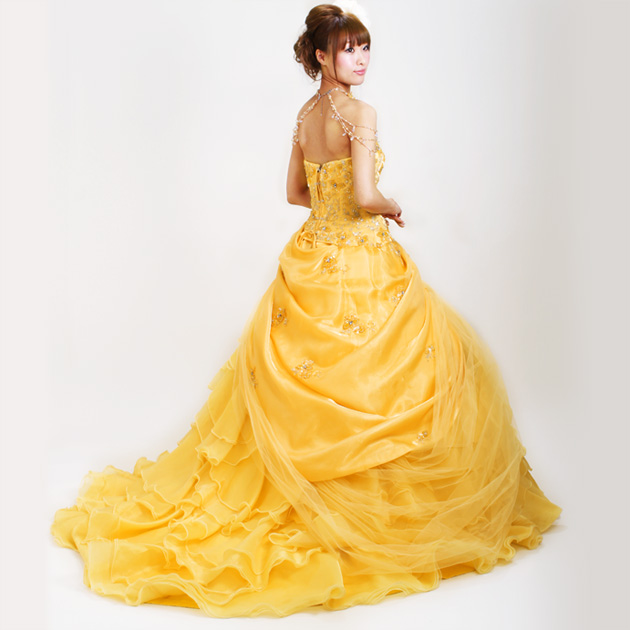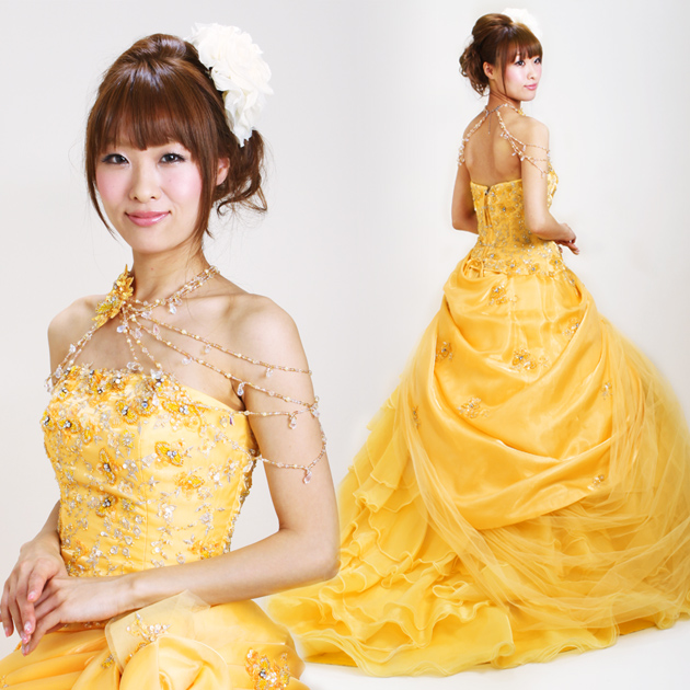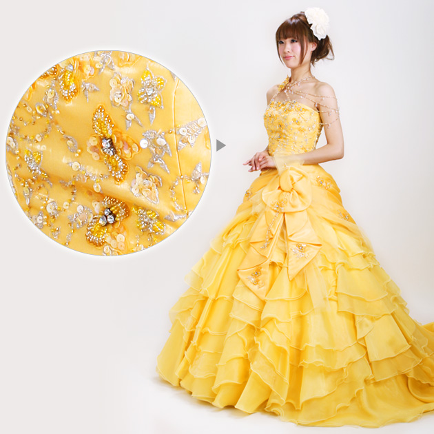 カラードレス レンタル 9号-13号 Aライン 黄色 お色直し 披露宴 7419 Pa238 送料無料