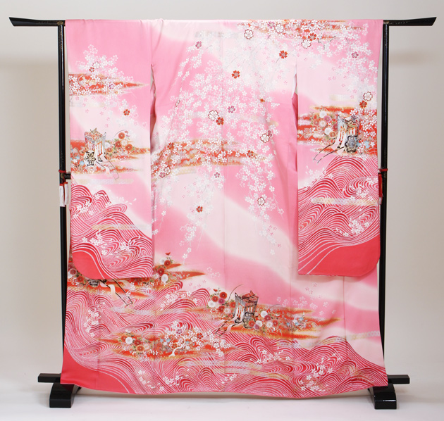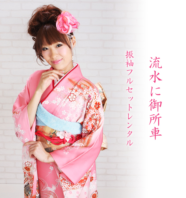 成人式 1月使用 振袖 レンタル ピンク色 流水に御所車 NT-114-sei 送料無料