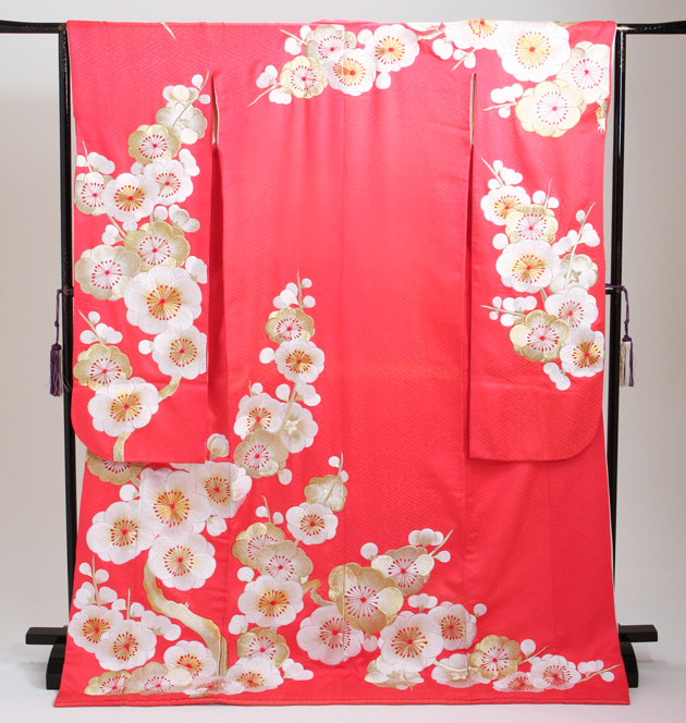 引き振袖レンタル 朱 色振袖 黒引き振袖 NT-232 ピンク 梅 キュート 花嫁 送料無料