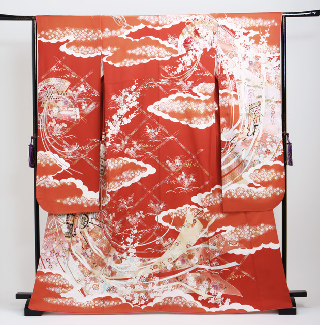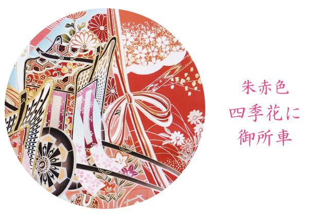 成人式 1月使用 振袖 レンタル 朱赤色 四季花に御所車 NT-120-sei 送料無料