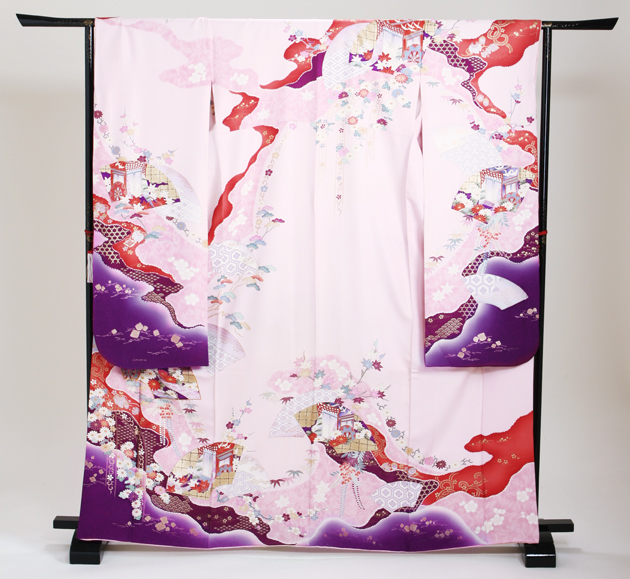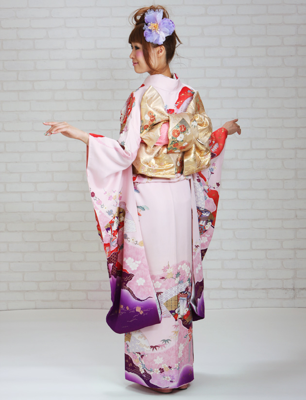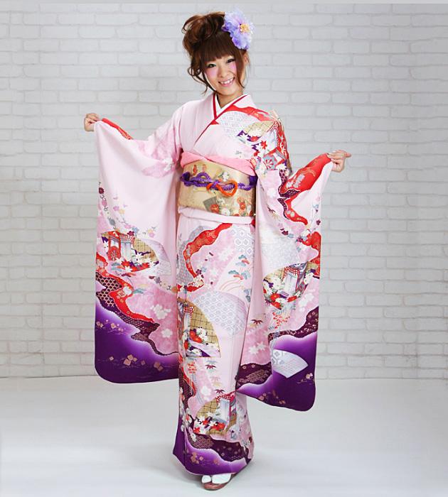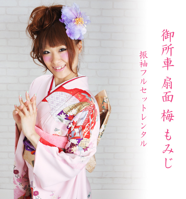 成人式 1月使用 振袖 レンタル ピンク色 御所車扇面梅もみじ NT-104-sei 送料無料