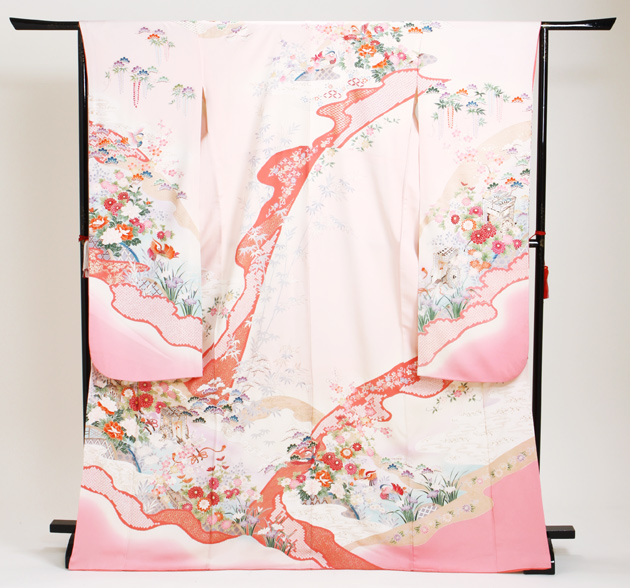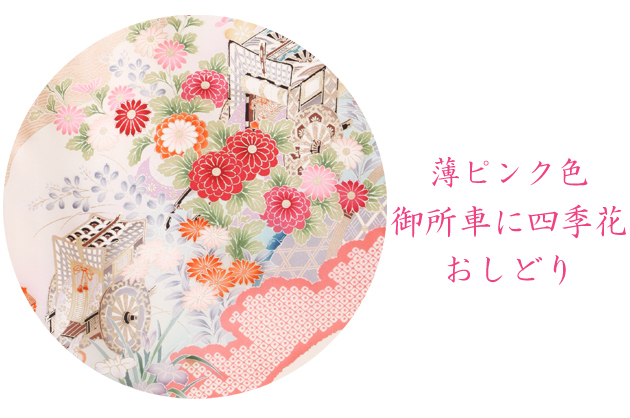 成人式 1月使用 振袖 レンタル 薄ピンク色 御所車に四季花・おしどり NT-109-sei 送料無料
