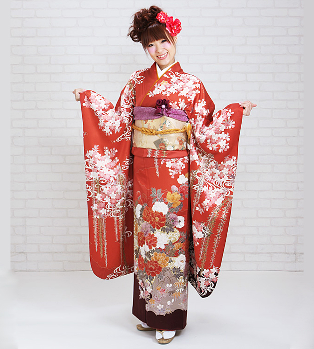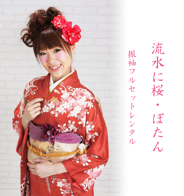 成人式 1月使用 振袖 レンタル 赤色 流水に桜・ぼたん NT-201-sei 送料無料