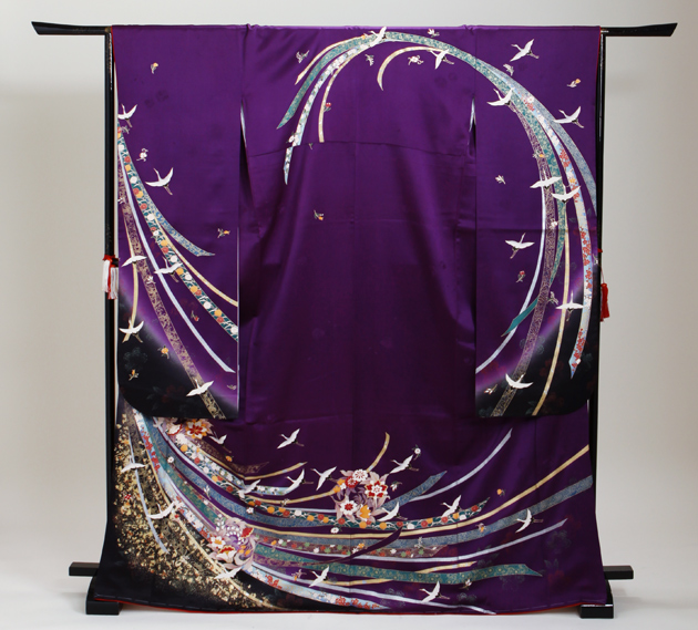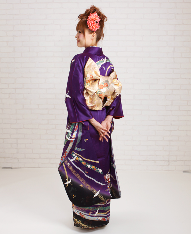 成人式 1月使用 振袖 レンタル 紫色 花紋熨斗飛鶴 NT-212-sei 送料無料