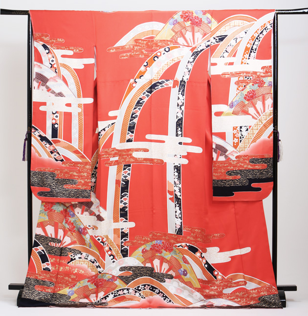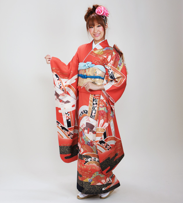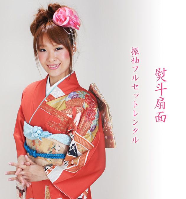 成人式 1月使用 振袖 レンタル レンガ色 熨斗扇面 NT-93-sei 送料無料