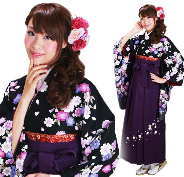 卒業式 袴セット 袴 レンタル 小学生 小学生卒業式袴セット 卒業式 女の子 黒色 ローズピンク コスモス 送料無料 FAG0292