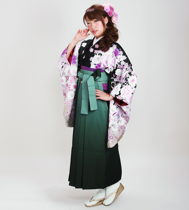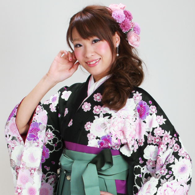 卒業式 袴セット 袴 レンタル 小学生 小学生卒業式袴セット 卒業式 女の子 黒色 黒まり 花柄 桜 送料無料 FAG0295