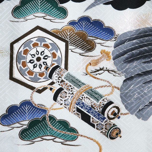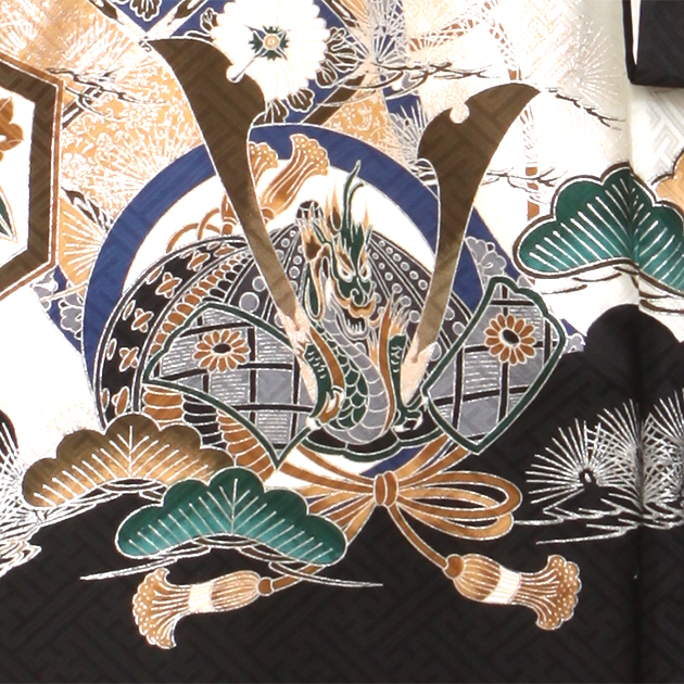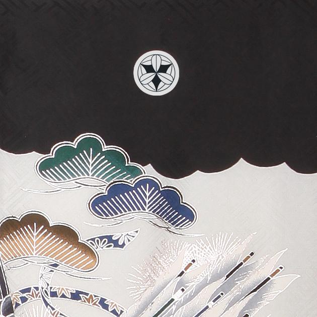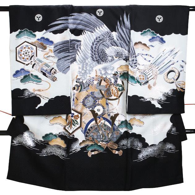 お宮参り 男の子 黒/鷹・かぶと m-53 日本製高級正絹 産着 レンタル 着物 送料無料