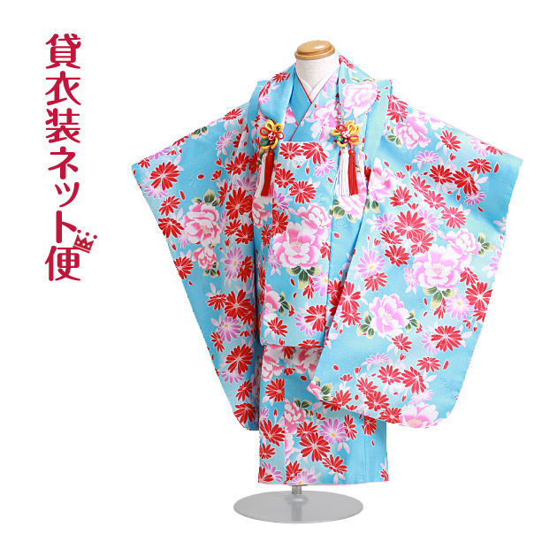 七五三 3歳 女の子 レンタル 被布 753 着物 3歳 水色/花 NT-356-22 送料無料