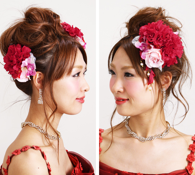 | 2点まとめると、とっても豪華!ブライダルのヘッドドレスにもオススメです。 赤やピンクのお花をゴージャスに仕上げた髪飾り2点セットです。 ボリュームのあるダリアや可愛いらしいピンクのお花で豪華な雰囲気に! パールが施されたブラは、動きに合わせて揺らめき華やかです。 ブライダルのヘッドドレスや和装髪飾りとして。 結婚式やパーティーなど、ドレススタイルにも合わせやすいですよ。 ※商品の色目につきましては、お客様のご覧になられますパソコン機器及びモニタなどの違いにより 実際の商品素材の色と相違する場合が御座います。予めご了承下さい。 |