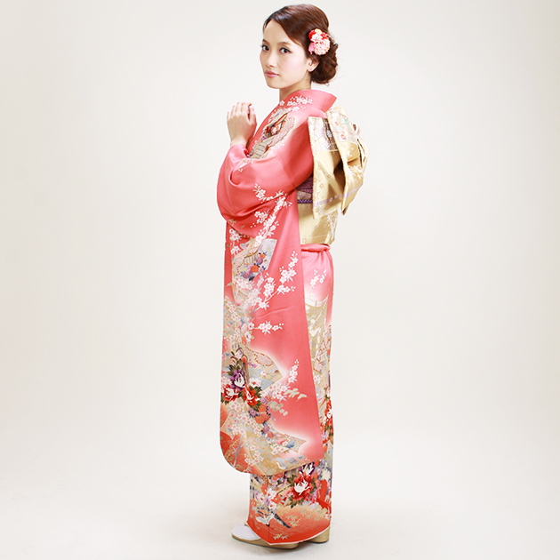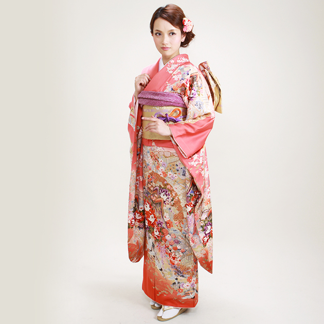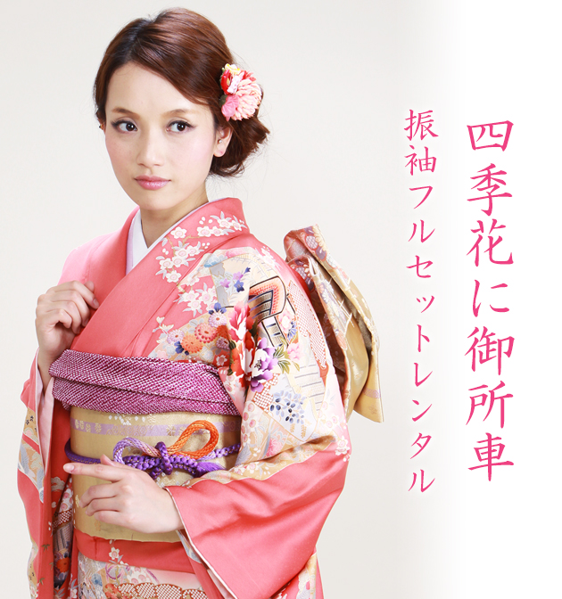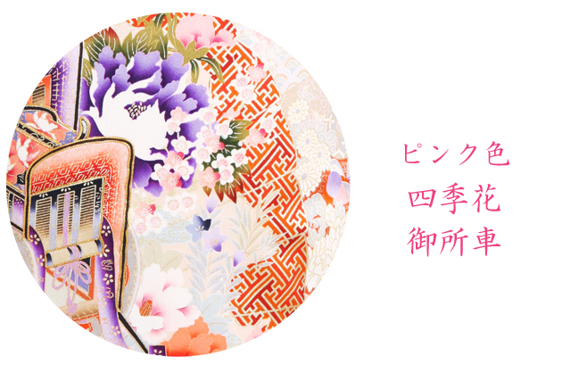 振袖 2月〜12月使用 振袖 レンタル ピンク色 四季花に御所車 NT-108 送料無料
