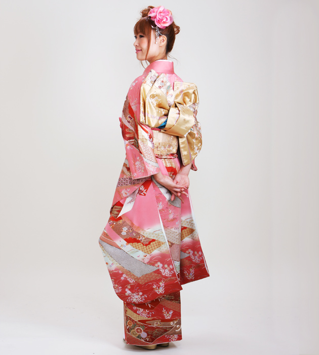 振袖 2月〜12月使用 振袖 レンタル ピンク色 熨斗に御所車 NT-118 送料無料