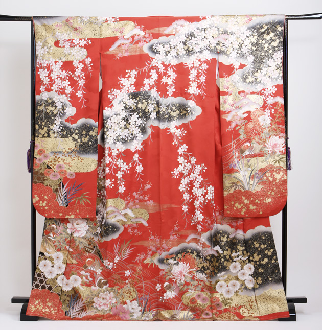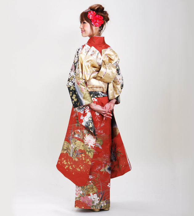 振袖 2月〜12月使用 振袖 レンタル 赤色 桜牡丹に鴛鴦 NT-190 送料無料