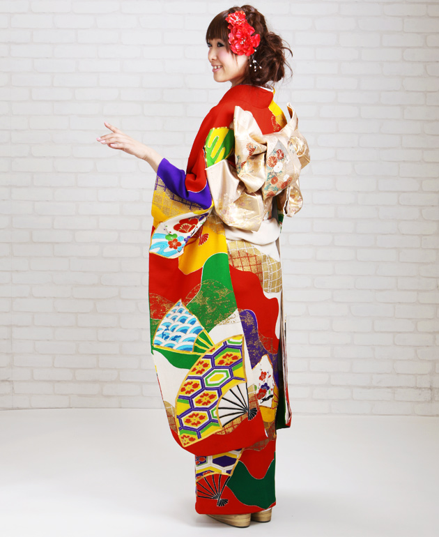 振袖 2月〜12月使用 振袖 レンタル カラフル 扇面・花 NT-164 送料無料