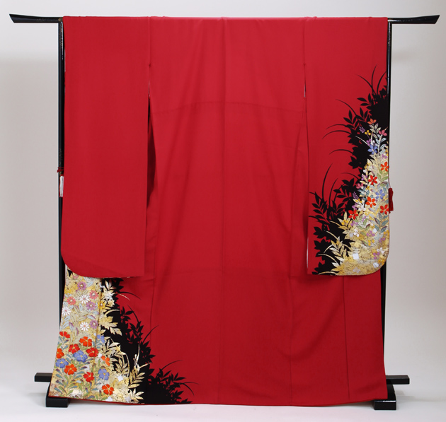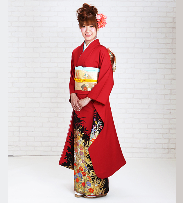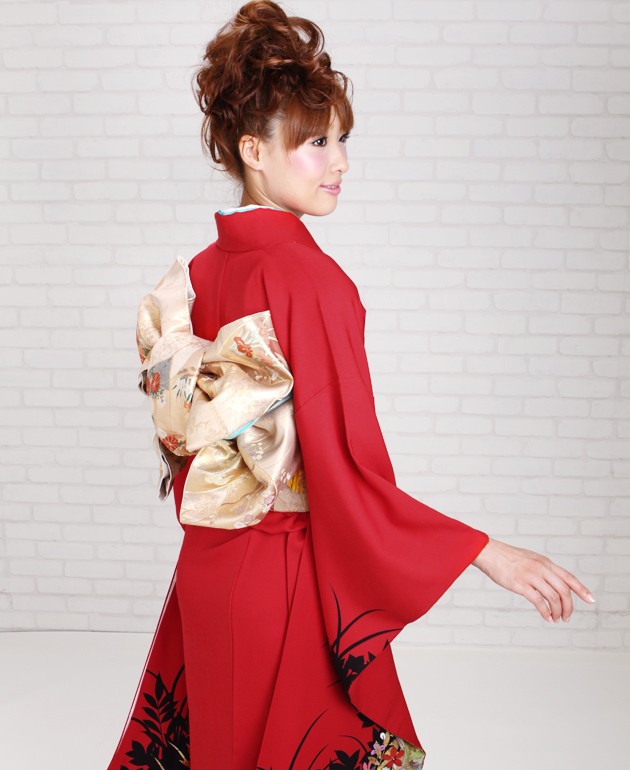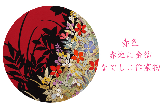 振袖 2月〜12月使用 振袖 レンタル 赤地に金箔なでしこ作家物 NT-193 送料無料