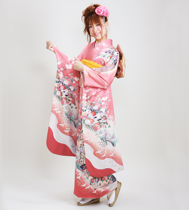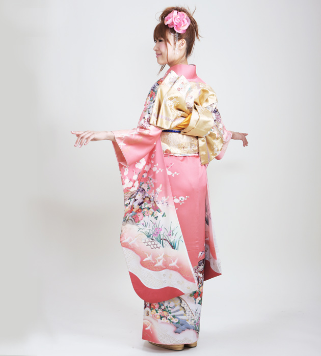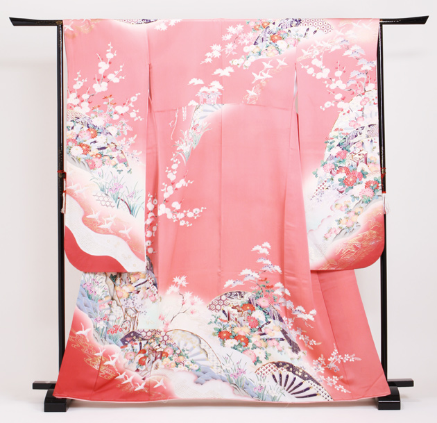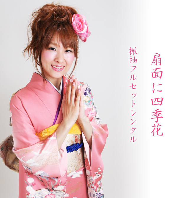 振袖 2月〜12月使用 振袖 レンタル ピンク色 扇面に四季花 NT-99 送料無料