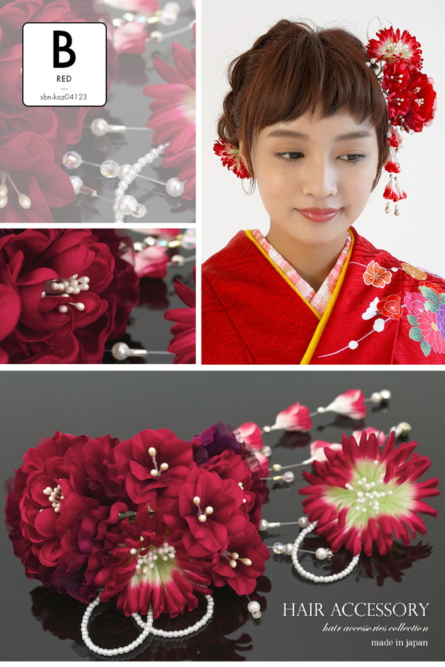 お花髪飾りの大小2つがセットになったヘアアクセセットです。