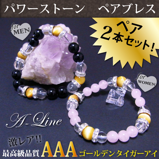 パワーストーン ブレスレット ペア2本セット AAAゴールデンタイガーアイ・オニキス・ローズクオーツ PW-2425