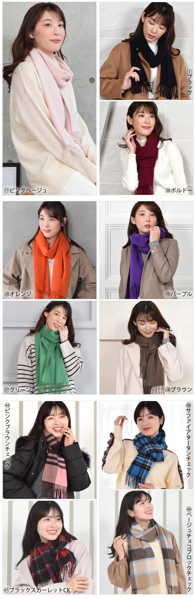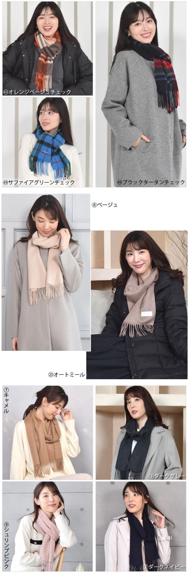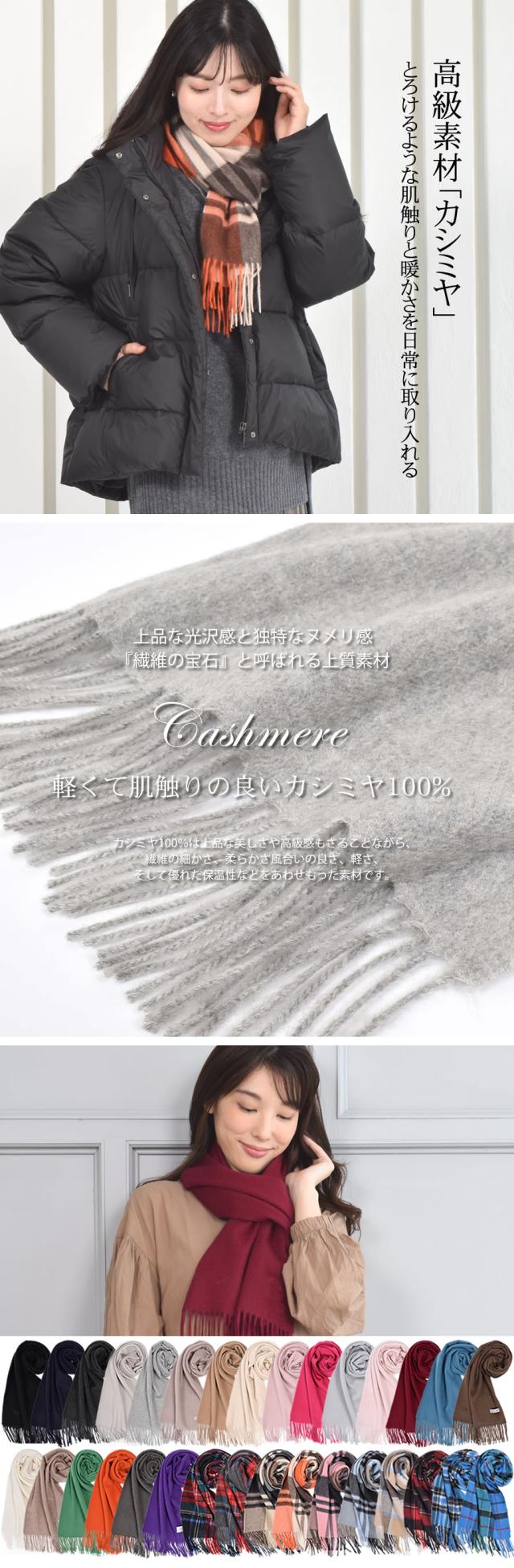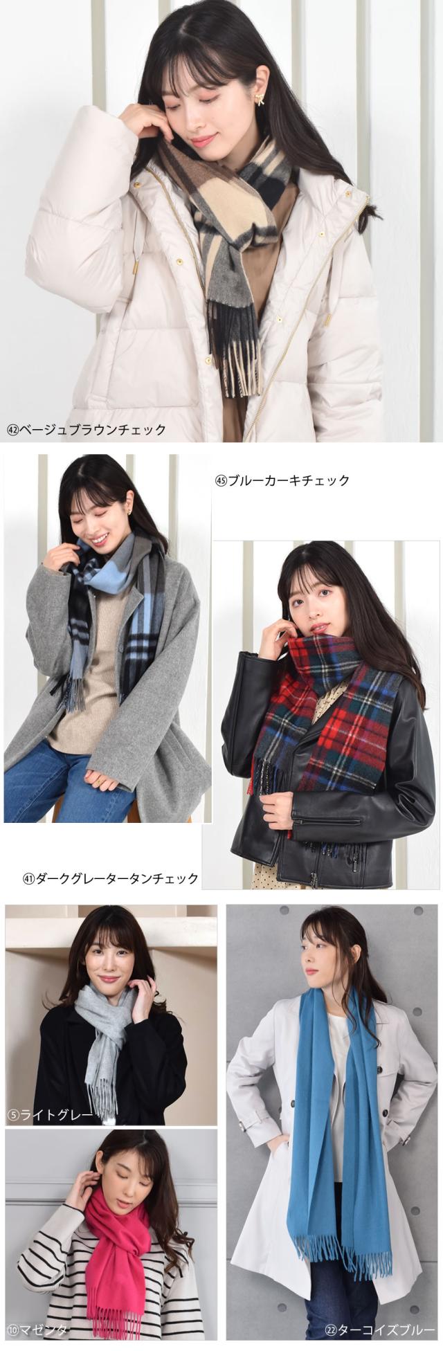するりと滑らかな肌触りの内モンゴル産のカシミヤを100%使用。繊維の細さ・光沢・しなやかさは世界最高品質とされています。驚くほど軽く、柔らかな質感が魅力のカシミヤ100%マフラー。「繊維の宝石」カシミヤ100%の滑らかなマフラーは、季節を彩る上質なウォームアイテム。こだわり品質・上質な光沢の「カシミヤ」マフラーを日常に取り入れ、とろけるような肌触りと暖かさを実感。デイリーからきちっとスタイルにもピッタリな無地マフラーはバリエーション豊富な21色。どんなコーデにも相性抜群で色違いで持っていても◎。人気のチェック柄は、タータンチェックから鮮やかな色合いのチェック柄まで、多彩なバリエーション。カジュアルにもきれいめにも使いやすさ◎。冬ファッションに欠かせない、一枚は持っていたい便利アイテムです。